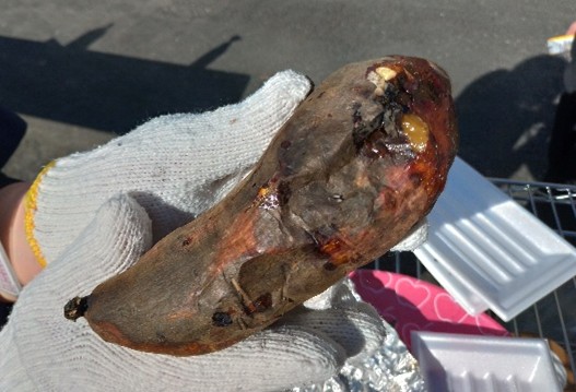 患者さんに焼きあがった芋を渡すと「芋のいい匂いがする!」と嬉しそうに皮をむいてバターをつけて食べていました。ねっとりとしたとても甘い焼き芋でたくさんの人がおかわりをしていました。他にも普段は人の中に入るのに抵抗がある方も「焼き芋は食べたい」と参加して最後まで過ごされていました。