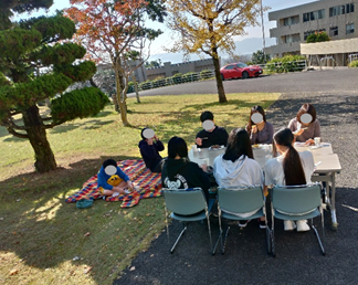 病院の庭でゆっくりのんびりおしゃべりをしながらの焼き芋会となりました。少し暖かくなったらまた計画したいと思います!